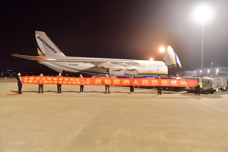 一架載有100萬只口罩的捷克軍機安124型大型運輸機起飛駛向捷克。這批由安徽輕工國際貿易股份有限公司代理出口的防疫物資,從3月16日確認訂單,到3月24日首批出運,創造了輕工速度、輕工服務、輕工效率!