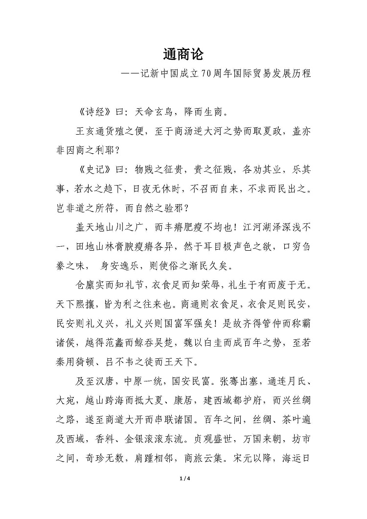 通商論——記新中國(guó)成立70周年國(guó)際貿(mào)易發(fā)展歷程