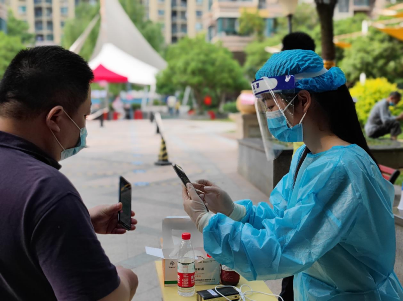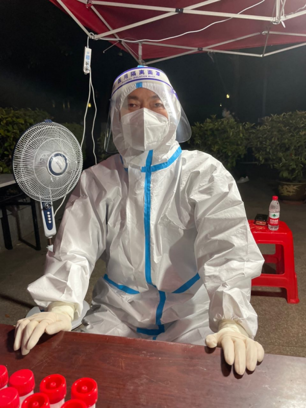 在天鵝湖畔小區,葉鋒、丁守忠化身“大白”,配合核酸檢測人員進行掃碼錄入工作,直至晚上十點;許明仙、王宜身著紅色志愿馬甲,配合待檢人員的測溫、安康碼核驗及秩序引導維護。在國際麗晶城小區,汪洋、陳秋宇穿上防護服,配合開展核酸檢測登記錄入。支部發展對象鄭宇倩所在小區處于封控區,得知社區需要防疫志愿者時,主動報名參加小區防疫先鋒隊,協助醫護人員核酸檢測。一天下來,汗透的衣服和酸痛的小腿,讓大家深刻體會到疫情防控工作的辛苦,切身感受到防控成果的來之不易。
